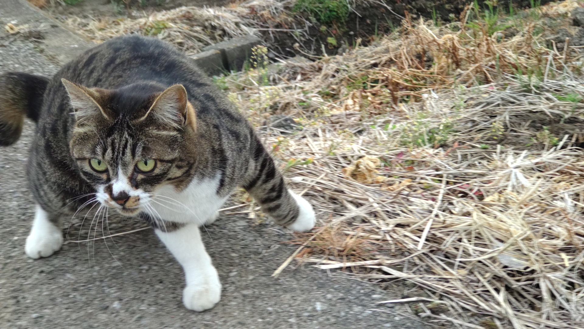 猫は進む方向だけを見すえて駆け抜け、後戻りしません。